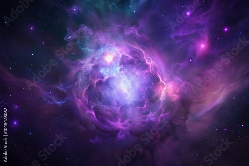 © JayOne1, Obraz premium Purple gas nebula in space and sparkling stars
