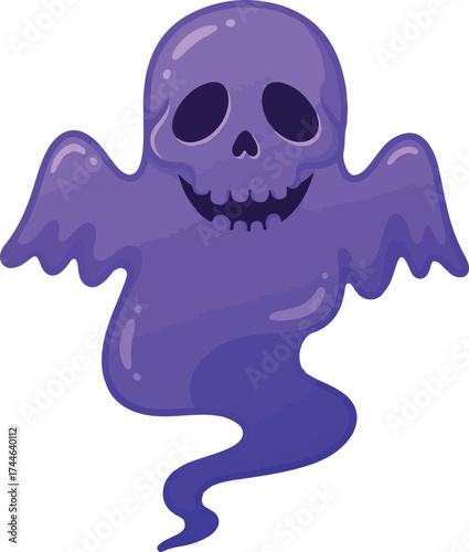 Fototapeta premium Purple ghost illustration with spooky face and waving arms for Halloween.