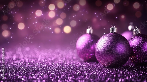 © Biancaart, Fototapeta premium Purple Glitter Background with Christmas Ornaments