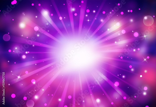 Fototapeta premium Purple glitter sparkles rays lights bokeh Festive Elegant abstract background.