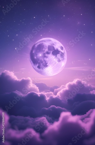 Fototapeta premium Purple Gradient Moonlit Sky with Clouds and Stars Mobile Wallpaper