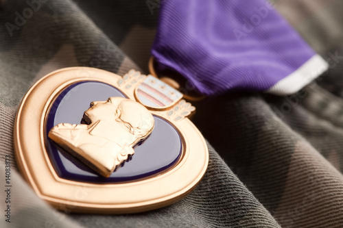 © Andy Dean, Obraz premium Purple Heart War Medal on Camouflage Material