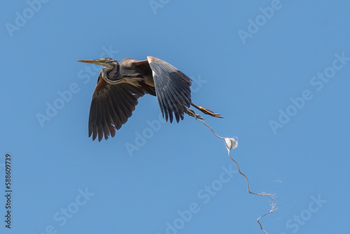 Obraz premium Purple heron pooping during flight