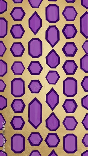 © Arceli, Fototapeta premium Purple Hexagon pattern hand drawn design on Gold background illustration