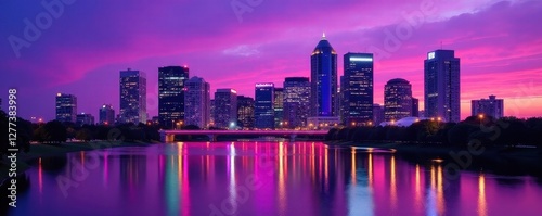 Obraz premium Purple hues paint Orlando's downtown skyline at dusk, light, florida