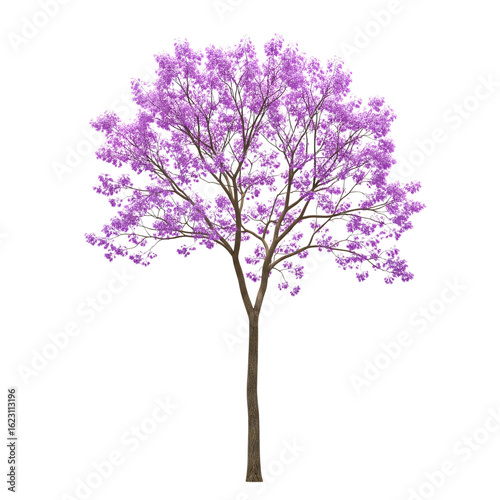 Obraz premium Purple Jacaranda tree with vibrant blossoms and a slender trunk isolated on...
