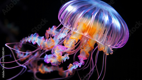 © MikeDrone, Obraz premium Purple jellyfish with tentacles