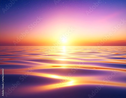 © Monika, Fototapeta premium Purple landscape background with sunset over the water surface