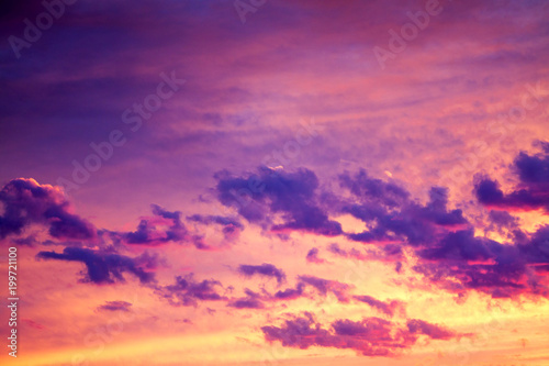 Fototapeta premium purple landscape with sky, clouds and sunrise a view