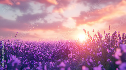 © marisca, Naklejka premium Purple Lavender Field Sunset Background