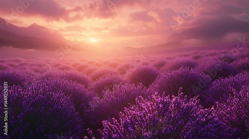 © Subir, Fototapeta premium Purple lavender fields shining at sunrise high resolution picture