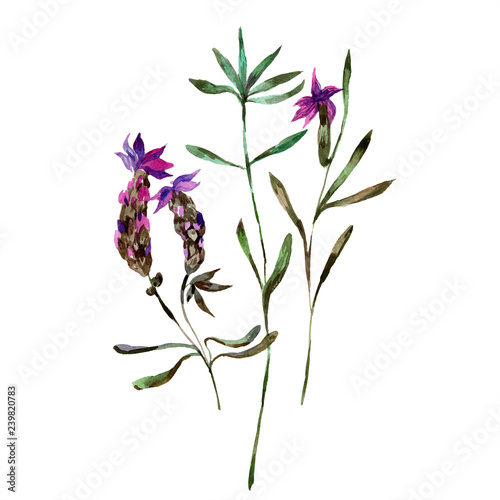 Obraz premium Purple lavender. Floral botanical flower. Watercolor background illustration set isolated.