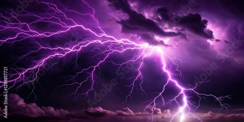 Obraz premium Purple lightning striking through a dark sky background, purple, lightning,...