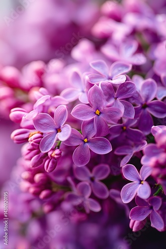© Alina, Obraz premium Purple lilac flowers bloom beautifully against a warm background in spring garden setting