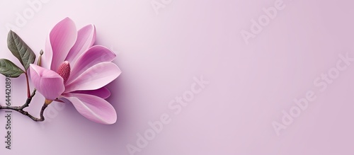 Naklejka premium Purple magnolia flower on a isolated pastel background Copy space with...