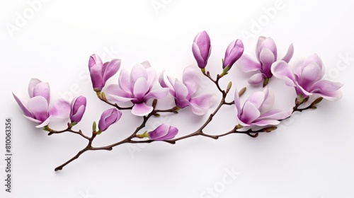 © Юлия Касаткина, Obraz premium purple magnolia flowers on white background,flower branch