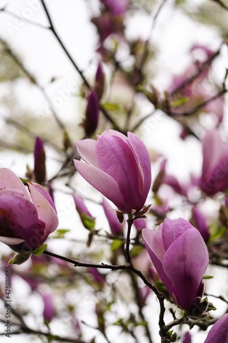 Fototapeta premium Purple Magnolia tree flowering- Spring flowers, selective focus