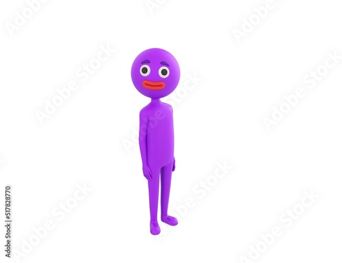 Obraz premium Purple Man character standing and look up to camera in 3d rendering.