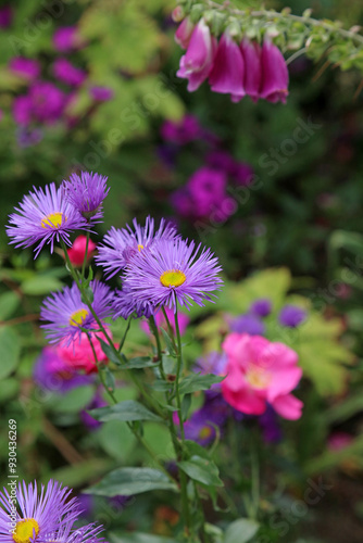 © Judith, Fototapeta premium Purple Midsummer daisy blooms, Derbyshire England