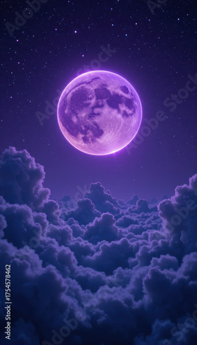 Obraz premium Purple moon rising above the clouds in a starry night sky