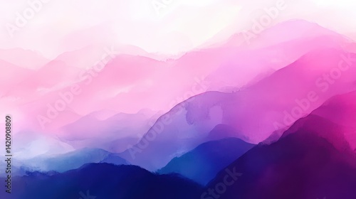 © fledermausstudio, Fototapeta premium Purple mountain dreamscape Layered ranges in soft hues merge towards the horizon