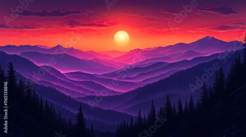 Obraz premium Purple mountain layers under a bright sunset.