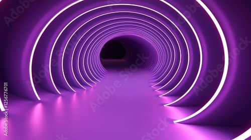 © Jagat_Aji, Naklejka premium Purple neon tunnel, abstract background, futuristic design, website banner.