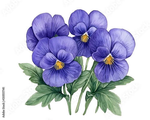 Fototapeta premium Purple pansies blooming, isolated, white background, artistic illustration, for spring design