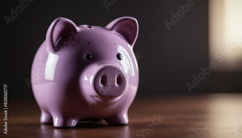 Fototapeta premium purple piggy bank, minimalist, savings, financial planning and money management concept