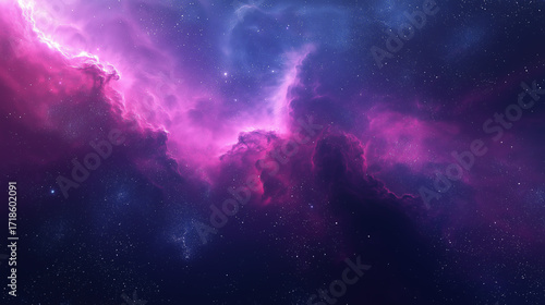 © stver, Fototapeta premium Purple-pink fluorescent nebula cosmic starry sky image, for sci-fi themed design, space exploration promotion and dreamy style projects