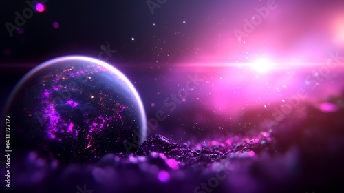 Obraz premium Purple planet cosmic background