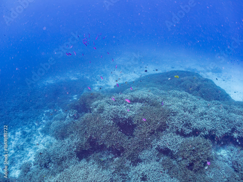 © d3_plus, Fototapeta premium ハナゴイ, ハタ科, Purple queen, Amethyst anthias, Pseudanthias pascalus, サンゴの森, 美しいサンゴ礁と熱帯魚の群れ。 安慶名敷島沖縄県 島尻郡慶良間諸島座間味島-2025 沖縄本島から40km西方の諸島。30以上の島嶼群全体が国立公園に指定。珊瑚礁の青い海と白い砂浜は世界屈指の美。貴重な動植物が多数生息。