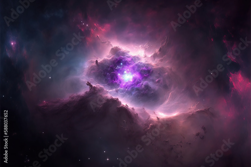 Fototapeta premium Purple, red and blue space with stars. Fantasy galaxy generative AI background