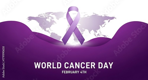 Fototapeta premium Purple ribbon symbolizing world cancer day awareness and global support