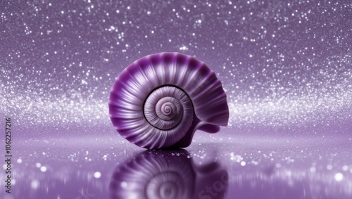 Fototapeta premium purple seashell on a shiny glittering purple background.