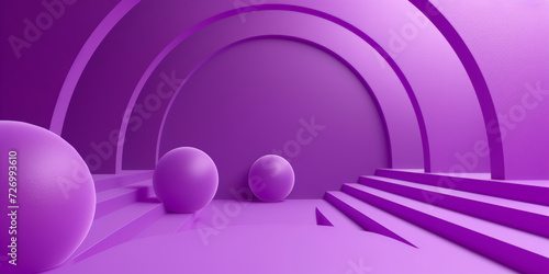 © Jira, Obraz premium Purple Serenity: A minimalist composition of arches, spheres, and steps in a soothing violet hue, offering a serene backdrop for product displays and artistic ventures.
