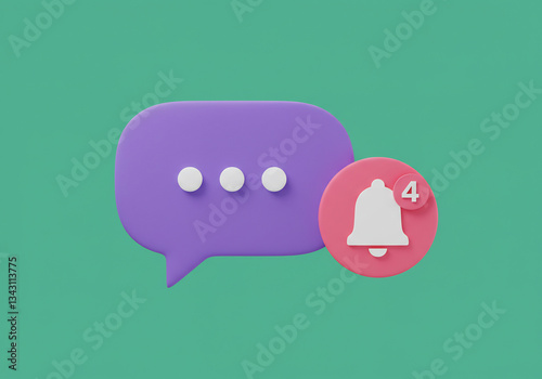 Fototapeta premium Purple Speech Bubble and Pink Notification Bell Icon 3D Render