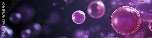 © Maham, Obraz premium Purple spheres floating abstract background for science technology and medical visualization hundred chars