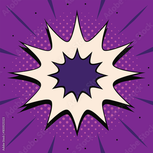 © MAH Sojol, Obraz premium Purple Starburst Comic Effect Background with Halftone Pattern