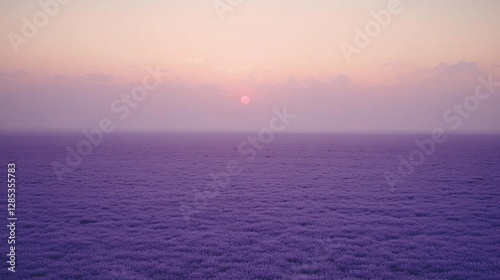 © Windi, Obraz premium Purple sunrise over misty field, aerial view, tranquil