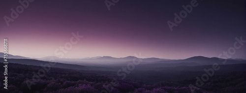 Fototapeta premium Purple Sunset Over a Serene Mountain Range