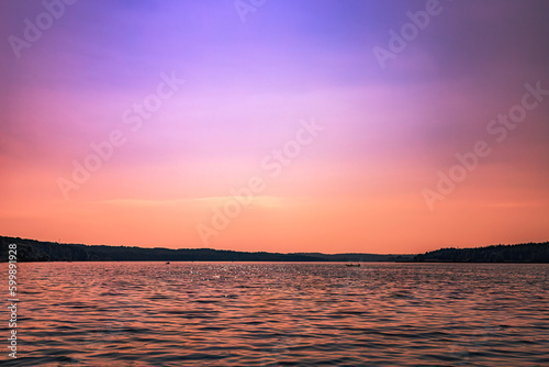 © Konstantin, Obraz premium Purple sunset over the lake with reflection on the water ripples