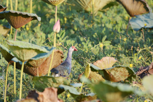 © pangcom, Obraz premium Purple Swamphen on the grass