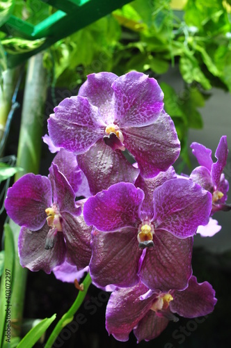 © Shony, Fototapeta premium purple tropical orchid flower blooming with green leaves