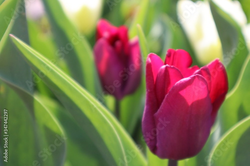 © hollia, Naklejka premium Purple tulip flower in the garden