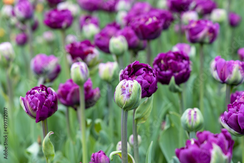 © A Stock Studio, Fototapeta premium Purple tulip flowers. Background image of nature with beautiful spring flowers.
