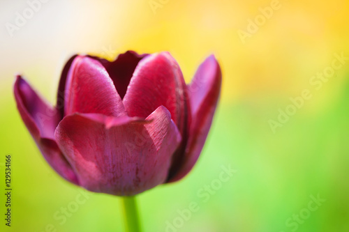 © murika, Fototapeta premium Purple tulip on the background of green grass close-up.