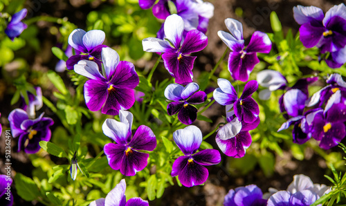 Fototapeta premium Purple violets on a green natural background