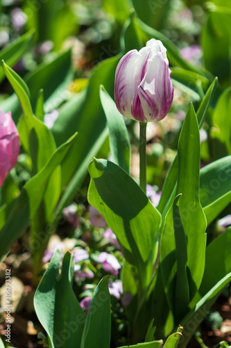 © Martina, Fototapeta premium Purple with white tulips, close-up