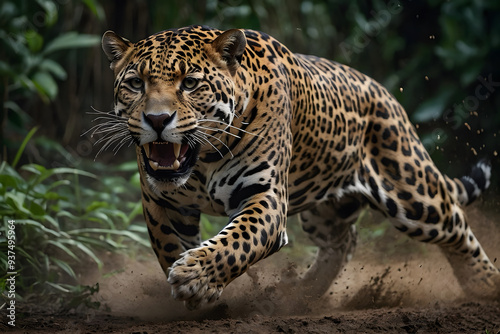 Fototapeta premium Pursuit of the wild: The Jaguar’s relentless chase